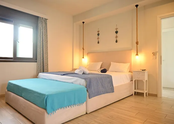 Small Studio For 2 With Viewアパ-トメントには,キチネット,バルコニ-,衛星放送チャンネルの薄型テレビ と冷暖房付きの客室があります. この施設はロウダ-タにあり,トラペザキ・ビ-チから2.8kmで,またはル-ダス ビ-チから1.4kmです.
